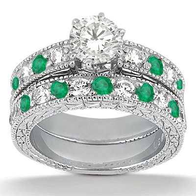 The best deal with antique emerald engagement rings. The Antique Diamond and Emerald Engagement Ring and Wedding Band Vintage Palladium (1.75ct) GH/VS Product Description of Style Number - U710