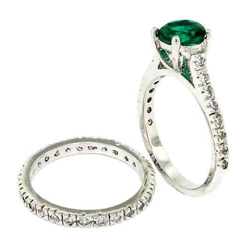 Low prices !! emerald wedding ring. The Classic/Vintage Wedding Ring Set w/Emerald, White CZs (12) A delightful wedding set, with an engagement ring and matching eternity wedding band.