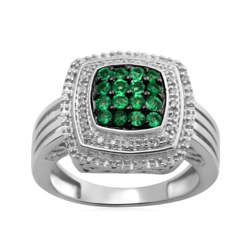 Jewelili Sterling Silver Ring with Genuine Zambian Emerald and 1/10 cttw Diamond, Ring Sz 7 feature